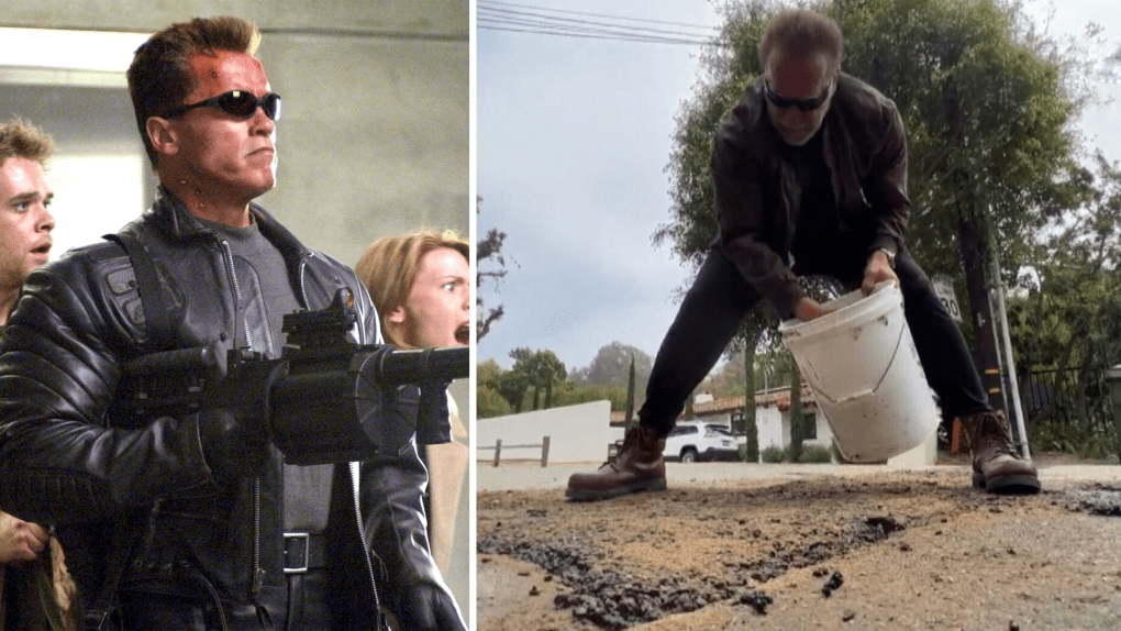 Arnold Schwarzenegger was in the news this week (a lot), when he and “his team” (his quote not mine) filled in a pot hole, in front of his house in California this week. The News Services covered the story as if he had “parted the Red Sea”………while running from a Terminator from the future……while texting………wearing a yellow shirt. Oh Hail Exalted One!!